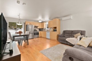 Salon: Espace à aire ouverte offrant une belle circulation et une atmosphère conviviale Plusieurs fenêtres Plancher de bois